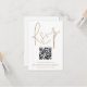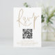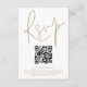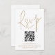 Carte RSVP simple de mariage par script or QR. Un boîtier d'option pratique pour demander à vos invités de scanner votre code QR vers votre site Web mariage à RSVP. Une typographie stylisée en or pour le titre principal RSVP complétant le reste du texte que vous pouvez facilement personnaliser.