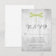 Élégante et simple carte de réponse Mariage avec une libellule verte contre un arrière - plan gris. Ce design branché est un choix unique pour un mariage moderne. Facile à customiser avec vos détails mariages. Cliquez sur "Customiser" pour trouver d'autres options de personnalisation.