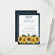 Envoyez à vos invités une carte RSVP de mariage rustique et élégante de tournesol bleu rustique avec votre invitation. Le design de la carte de réponse est orné d'un arrière - plan rustique en bois avec un élégant bouquet de tournesols. Personnalisez avec la date de réponse et les choix de menu. Papier à lettres mariage supplémentaire disponible avec cette conception aussi.