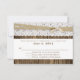 Carte RSVP Rustique chic réponse mariage, avec des graphiques d'un arrière - plan rustique en bois patiné, avec une bande blanche courant à travers le milieu. Les graphismes d'élégante dentelle blanche, au sommet, a un ruban à double brin couleur champagne brun attaché dans un noeud. Personnalisez le texte teinté pour votre journée spéciale. Produits correspondants disponibles.