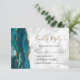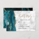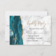 Le bord gauche de cette élégante carte d'enceinte RSVP de mariage moderne est doté d'une bordure d'aquarelle turquoise ornée d'une parties scintillant en faux or. Le titre "Kindly Reply" apparaît dans un script d'écriture manuscrite de couleur or, avec le texte personnalisable ci-dessous en police de caractères noirs sur un arrière - plan blanc. L'envers présente un design d'agate turquoise et or assorti.