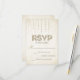 Ce design élégant de carte RSVP de mariage par The Spotted Olive™ est doté d'un arrière - plan doux avec une image de gemmes en streaming descendant du haut et le mot "RSVP" rempli d'une image de parties scintillant en or. VEUILLEZ NOTER : CETTE CONCEPTION NE COMPORTE QU'UNE IMAGE IMPRIMÉE DE PARTIES SCINTILLANT ; IL N'Y A PAS DE PARTIES SCINTILLANT PHYSIQUE UTILISÉE OU INCLUSE ; IL N'Y A PAS D'EMBELLISSEMENTS. IL S'AGIT D'UNE INVITATION IMPRIMÉE À PLAT. CONSEIL : Si vous souhaitez un peu plus de fraicheur à votre invitation, mettez-vous à niveau vers le papier métallique. Cliquez sur le bouton "Customiser" pour accéder à l'outil de conception où vous pouvez modifier la police, la taille du type, la couleur du type, le positionnement du texte et plus encore. Copyright 2014-Present | L'Olive tacheté™ | Tous droits réservés