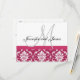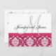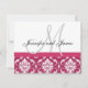 Carte RSVP de mariage Hot rose Damask Monogramme &