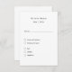 Collectez facilement les réponses des clients à l'aide de cette carte RSVP minimaliste, conçue pour correspondre à votre gamme complète de papeterie mariage. La disposition propre et moderne assure la clarté tout en reflétant le style raffiné de votre célébration. Personnalisez vos options de réponse préférées, vos choix de repas et votre adresse de retour pour rendre la planification sans stress pour vous et vos invités. Compact en taille mais grand en impact, cette carte RSVP s'associe parfaitement avec nos invitations correspondantes, Enregistrer les cartes Date, les cartes de détails et les notes de remerciement. Disponible sur tous les types de papier — les couples choisissent souvent le lin de luxe pour une texture supplémentaire, le Shimmer de Pearl pour une finition radiante, ou l'Ultra-épais pour une sensation élevée. Les enveloppes correspondantes sont incluses, ce qui facilite la réponse rapide des clients. Faites votre processus RSVP sans effort et élégant avec une carte minimaliste qui complète l'élégance de votre jour de mariage.