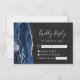 Carte RSVP de mariage moderne Marine Blue Silver A