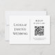 Une carte RSVP élégante et pratique avec un design minimaliste avec des polices classiques sur un arrière - plan blanc. Customisez-le avec vos noms, le site du mariage, le code QR et la date pour vous assurer que les invités confirment leur présence lors de votre journée spéciale.