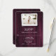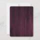 Envoyez à vos invités une carte RSVP en bois magenta simple et élégante avec votre invitation. La conception de la carte RSVP comprend un arrière - plan en bois magenta rustique avec un cadre de style d'image superposé pour votre propre photo. Personnalisez avec la date de réponse et les choix de menu. Papier à lettres mariage supplémentaire disponible avec cette conception aussi. Vous avez besoin d'aide pour la personnalisation ? Merci de me contacter et je travaillerai sur le libellé et les détails pour adapter ce design à votre satisfaction.