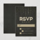 Ce design élégant de carte RSVP de mariage par The Spotted Olive™ est doté d'un arrière - plan noir avec une image de gemmes en streaming descendant du haut et le mot "RSVP" rempli d'une image de parties scintillant en or. VEUILLEZ NOTER : CETTE CONCEPTION NE COMPORTE QU'UNE IMAGE IMPRIMÉE DE PARTIES SCINTILLANT ; IL N'Y A PAS DE PARTIES SCINTILLANT PHYSIQUE UTILISÉE OU INCLUSE ; IL N'Y A PAS D'EMBELLISSEMENTS. IL S'AGIT D'UNE INVITATION IMPRIMÉE À PLAT. Copyright 2014-Present | L'Olive tacheté™ | Tous droits réservés