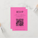 Simple QR Code Hot rose Wedding RSVP. Imprimable ou imprimé.. Boîtier RSVP de Mariage de code QR simple, ce qui permet à vos invités de répondre en scannant votre code QR menant à votre site Web mariage. Design typographique entièrement personnalisable en rose chaud tendance. Personnalisez facilement les mots à votre façon. Votre code QR sera généré automatiquement pour mettre à jour l'exemple de code dans la conception, lorsque vous changez simplement l'exemple d'URL dans le modèle avec votre propre URL de site mariage. Vous pouvez également modifier le texte et les couleurs arrière - plans si vous le souhaitez via l'option customiser plus pour correspondre à votre thème de couleur mariage. Si vous avez besoin d'aide pour cela, s'il vous plaît envoyez-moi un message.