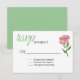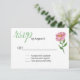 Jolie carte de réponse mariage faite en blanc, avec des graphiques d'une fleur d'aquarelle rose. Le dos est fait dans un vert solide. Personnalisez tous les champs de texte personnalisés pour votre mariage. Des produits correspondants sont disponibles.