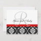 Carte RSVP de mariage Rouge Damas Monogramme & Nom