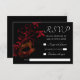 Elégants roses floraux rouge et or embellit la carte de mariage à thème mascarade RSVP. Personnalisez avec votre propre date et texte de personnaliser pour en faire votre propre.
