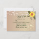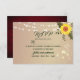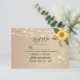 Invitation vos invités à répondre avec style avec notre élégante carte RSVP d'inspiration campagnarde. Doté d'un mélange de bordeaux rustique et d'or rose, ce design moderne est orné de lampes à cordes, de tournesols et de dentelles dorées à fleurs dorées. Un script de calligraphie simple ajoute une touche de sophistication, parfait pour votre mariage botanique et boho.
