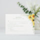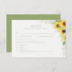 Découvrez notre carte RSVP Rustic Sunflower Delight, conçue pour une coordination parfaite avec notre collection de mariages inspirés du tournesol. Cette carte RSVP permet non seulement à vos invités de confirmer leur présence, mais aussi de choisir les repas et les préférences alimentaires, assurant ainsi une expérience d'événement personnalisée et transparente. L'avant de la carte présente un design de tournesol charmant, évoquant un sentiment de beauté naturelle et d'élégance rustique. Le texte guide élégamment vos invités à travers le processus RSVP, leur permettant d'indiquer leur réponse, de choisir leur option de repas préférée et de noter les exigences alimentaires spécifiques. Au verso de la carte, vous trouverez l'adresse du couple, ce qui simplifie le processus de retour des clients. Ce détail attentionné leur permet d'envoyer facilement leurs RSVP et de recevoir rapidement leurs réponses. Rationalisez votre planification mariage avec notre carte RSVP Rustic Sunflower Delight. Cet ajout élégant et pratique à votre suite d'invitation vous aidera à recueillir des informations importantes pour un événement doux et délicieux. Nous espérons que vous apprécierez ce produit et vous souhaitons une joyeuse fête remplie d'amour et de moments chéris!