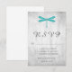 Carte de réponse Mariage simple et élégante, avec une libellule turquoise contre un arrière - plan gris. Ce design branché est un choix unique pour un mariage moderne. Facile à customiser avec vos détails mariages. Cliquez sur "Customiser" pour trouver d'autres options de personnalisation.