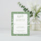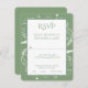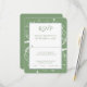 Envoyez à vos invités une carte RSVP de mariage Moss Green Flourish simple et élégante avec votre invitation. Le design de la carte de réponse est doté d'une élégante floraison feutrée avec un arrière - plan de couleur assorti. Personnalisez avec la date de réponse et les choix de menu. Papier à lettres mariage supplémentaire disponible avec cette conception aussi.