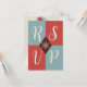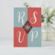 Mi-siècle rencontre contemporain dans ces cartes de Noël RSVP festives! L'avant présente un agencement géométrique élégant avec lettrage en ivoire audacieux sur des blocs de corail rouge et bleu ardoise, tandis que l'arrière est illustré de formes et de couleurs pour suggérer un arbre de Noël stylisé. Entrez votre propre date "répondre par" ou personnaliser plus loin pour ajouter vos propres informations rsvp personnalisées.