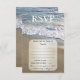 Carte RSVP avec une image de plage rêveuse avec des vagues qui coulent sur le sable. Cette carte RSVP correspond aux invitations de mariage.