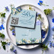 Cette Dusty Blue Gold Parties scintillant Floral Modern Script QR Code Wedding RSVP Card est parfait pour toute personne à la recherche d'une carte RSVP florale simple mais moderne. Vous pouvez simplement modifier les détails ou les customiser en ajoutant vos propres graphismes ou conceptions.