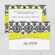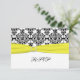 Cette carte de réponse en damas noir et blanc personnalisable est dotée d'un ruban imprimé jaune et d'une boucle de ceinture ornée imprimée qui correspond à l'invitation de mariage présentée ci-dessous. Si vous avez besoin de modifications ou d'articles supplémentaires assortis, veuillez envoyer votre demande par courriel à niteowlstudio@gmail.com.