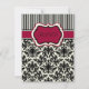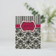 Carte RSVP en damas noir, ivoire et rouge rayé