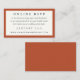 Classic type et un cadre élégant de riche carreaux de terre rouge-orange donnent à cette carte de demande RSVP en ligne la polyvalence pour s'intégrer avec toutes sortes d'invitations, juste ajuster la couleur arrière - plan pour correspondre à vos couleurs d'événement. N'oubliez pas de personnaliser la réponse par date et le texte de l'url du site de cette carte d'insertion RSVP en ligne et diriger votre invité vers votre site Web mariage tout en économisant quelques arbres et de l'argent sur l'affranchissement.