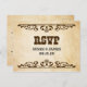 Cette carte RSVP de style occidental fait partie de la collection Western Theme Mariage de Music City Tee et dispose d'un arrière - plan de parchemin marron rustique avec des polices de style occidental. Cette carte RSVP peut être personnalisée pour répondre à vos besoins individuels de cérémonie de mariage.