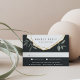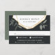Conçue pour coordonner avec notre collection de mariages en feuille d'olive, cette carte RSVP botanique fraîche et au choix de repas comprend des feuillages de branche d'olivier et des éléments géométriques dorés qui surplombent la date de réponse désirée et une formulation personnalisée d'acceptation et de déclin. Un arrière - plan noir riche et épais ajoute un attrait spectaculaire. Demandez aux clients d'indiquer leur choix d'entrée à l'avance en remplissant vos choix de repas sur la dernière ligne.