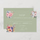 Demandez à vos invités de répondre avec style avec cette carte RSVP fleur sauvage verte sage, inspirée par la beauté fantastique des mariages cottagecore. Des flores délicates dessinées à la main et des tons verts doux créent un look romantique et d'inspiration nature. Parfait pour les fêtes rustiques, de jardin, de printemps ou de plein air, cette carte de réponse est facile à personnaliser avec votre propre libellé, que vous planifiez un événement formel ou une liaison décontractée. Paire magnifiquement avec les invitations fleurs sauvages assorties et la papeterie mariage vert sage pour une suite cohésive et charmante.