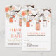 Faire-part de mariage avec des pots mason, des fleurs, des oiseaux amoureux et une corde à cœur - mignon et fantaisiste, parfait pour le printemps et les mariages en plein air.