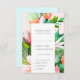 Cette jolie carte RSVP tropicale est parfaite pour les mariages de destination sous les tropiques. Le RSVP floral présente un bel arrangement floral aquarelle avec des feuilles verts luxuriants, des fleurs de corail et des fleurs roses. Trois choix de repas sont inclus. Cette carte de réponse aux fleurs d'aquarelle correspond à la papeterie mariage de notre collection de mariages floraux tropicaux.