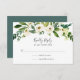 Conçue pour coordonner avec notre collection de mariages Albâtre, cette carte RSVP botanique verte et blanche fraîche comprend un jet de verdure et de fleurs blanches à l'aquarelle qui surplombe la date de réponse désirée et un libellé personnalisé d'acceptation et de déclin.