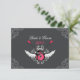 Carte RSVP non conventionnelle à envoyer avec la faire-part de mariage correspondante, sur rose fuchsia, blanc et gris avec un thème rock and roll avec illustration de guitares électriques, ailes et élégants ornements baroques vintages. Personnalisez-le avec vos propres informations ou cliquez sur "Customiser" si vous avez besoin de modifier la mise en page, les couleurs et le texte ou de choisir une autre taille d'invitation. Des invitations de mariage et des enveloppes assorties sont également disponibles.