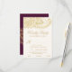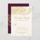 Cette carte RSVP de choix en cachemire d'or indien est parfaite pour un mariage élégant. Le design mehndi présente un joli mandala au henné floral et un motif paisley sur un arrière - plan bordeaux. Cette carte de réponse mariage demande aux clients quel repas ils souhaitent à la réception. Remarque : Ce design ne comporte pas de véritable feuille d'or. C'est un graphisme de haute qualité fait pour ressembler à du papier doré.