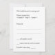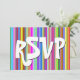 Cette carte R.S.V.P. ludique et joyeuse présente le message "RSVP" sur le devant. Il comporte également un formulaire RSVP personnalisé à l'arrière pour que le destinataire puisse le remplir. Les cartes RSVP comme celle-ci peuvent être utilisées pour savoir qui assistera à une réception de wedding shower, à un mariage, à une fête de retraite, à une fête de remise de diplômes ou à une autre célébration.