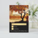Elégante carte RSVP avec un arbre d'automne coloré avec une lanterne festive donnant sur un lac romantique. L'avant a une image arrière - plan de texte séparée pour faciliter l'écriture de vos invités. Vous pouvez faire glisser ou supprimer cette image selon vos besoins.