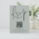 Code QR moderne Script Mariage Light Sage Green RSVP. Un boîtier d'option pratique pour demander à vos invités de scanner votre code QR vers votre site Web mariage à RSVP. Une typographie stylisée en noir pour le titre principal RSVP complétant le reste du texte que vous pouvez facilement personnaliser. Votre code QR sera généré automatiquement pour mettre à jour l'exemple de code dans la conception, lorsque vous changez simplement l'exemple d'URL dans le modèle avec votre propre URL de site mariage.