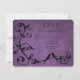 Envoyez à vos invités une carte RSVP de mariage violet simple et élégante avec votre invitation. La carte RSVP est composée d'un arrière - plan de grunge violet orné d'une vigne feuillue et de deux lovebirds au repos. Personnalisez avec la date de réponse et le choix du menu pour la réception. Papier à lettres mariage supplémentaire disponible avec cette conception aussi. Vous avez besoin d'aide pour la personnalisation ? Merci de me contacter et je travaillerai sur le libellé et les détails pour adapter ce design à votre satisfaction.
