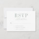 Carte RSVP de Mariage Vert Sage Mariage moderne. Le design élégant présente du texte vert sage sur blanc. Personnalisez avec votre date de réponse RSVP. Les couleurs de texte et d'arrière - plan avant et arrière sont entièrement personnalisables. Retour montré dans la sauge solide. Nous vous invitations à visiter notre magasin Zazzle, GJ Design Co, pour voir les produits correspondants et plus encore.