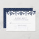 Conçu pour coordonner avec nos mariages de Marrakech et nos invitations à des évènements, cette carte de réponse élégante en bleu marine et blanc classique dispose d'une bordure supérieure géométrique d'inspiration marocaine. Ajoutez votre date RSVP et le texte de réponse dans marine correspondante.