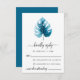 Design moderne de carte RSVP avec illustration en feuille de monstère aquarelle sur un simple arrière - plan blanc. Le côté inverse de l'invitation est en bleu profond.