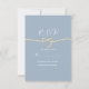 Simple, minimaliste, moderne, blanc et bleu poussiéreux carte de mariage RSVP avec coeur de corde or et écriture manuscrite tendance.