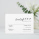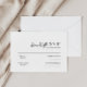 Les cartes RSVP minimalistes de mariage sont la façon idéale d'annoncer votre mariage à vos invités. Chaque carte présente un design moderne et simple. Imprimés sur un carton de haute qualité, ils impressionneront vos invités et donneront le ton de votre journée spéciale. Ma collection minimaliste de mariages comprend tout ce dont vous avez besoin pour rendre votre journée spéciale vraiment inoubliable. Collection : https://www.zazzle.com/collections/modern_minimalist_wedding_collection-119847641785023287