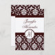 Carte RSVP Monogramme Brown Damask sur papier à fe