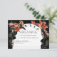 Cette carte RSVP est parfaite pour ceux qui recherchent un style sombre et unique avec une touche élégante. Placé contre un riche arrière - plan noir, le design présente des lys orange et roses vibrants entrelacés de verdure luxuriante, créant un cadre spectaculaire et sophistiqué autour des détails RSVP. La police d'inspiration vintage ajoute une touche classique, tandis que les options de formulation ludique, "Sera là toasts" et "Sera torréfier de loin", offrent une sensation légère. Idéale pour les mariages ou les événements d'un style gothique ou vintage, cette carte RSVP vous fera certainement vibrer et donnera le ton d'une fête mémorable.