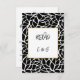 Notre carte de Motif Abstrait Foliage noir blanc RSVP complète votre papeterie mariage. Avec un format portrait, un feuille blanc encadre un motif encadre un champ de texte. Une fois la carte retournée, un arrière - plan blanc tient le texte noir. Il y a la date limite du RSVP et le récipiendaire est encouragé à écrire le nombre de participants, leurs exigences alimentaires et une chanson préférée qui incite à danser. Customisez le texte pour refléter votre événement. Explorez les options de personnalisation des couleurs en suivant le lien Modifier. Pour plus d'inspiration mariage, visitez www.KBMD3signs.com. Pour toute demande de conception ou de personnalisation personnalisée, contactez-nous à l'adresse info@KBMD3signs.com.
