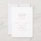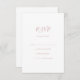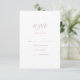 Cette carte simple et élégante en or rose RSVP est parfaite pour votre mariage d'or rose minimaliste classique. Le design est composé d'une vintage classique minimaliste, d'une police d'or blush contemporaine et d'une calligraphie formelle romantique délicate. Il est parfait pour les mariages de luxe du printemps, de l'été, de l'automne ou de l'hiver. Gardez-le tel quel, ou choisissez de le personnaliser avec vos propres oeuvres d'art ou photos !