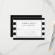 Conçue pour coordonner avec notre Metro Stripe Black mariage et les invitations d'évènements, cette carte de réponse simple et chic dispose d'un arrière - plan de larges bandes horizontales en noir et blanc classique, avec vos détails RSVP dans un mélange de styles de bloc moderne et typographie de script traditionnel.