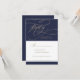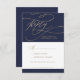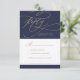 Cette carte RSVP romantique en or et en marine pour la demande de chanson imprimable est parfaite pour un mariage simple. Le design classique moderne comprend des tourbillons fantaisistes et des fleurs fantaisistes avec une magnifique typographie de feuille d'or en faux champagne. Créez votre liste d'invités mariages et votre liste de chansons de piste de danse tout à la fois ! Cette carte de réponse mariage demande aux invités s'ils pourront assister à votre mariage, et aussi quelle chanson les amènera à danser. Disponible sous forme de carte imprimée ou de téléchargement instantané. Remarque : Ce design ne comporte pas de véritable feuille d'or. C'est un graphisme de haute qualité fait pour ressembler à du papier doré.