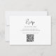 Moderne et élégant Mini Script Wedding RSVP QR Card est conçu pour vous aider à célébrer votre mariage avec style! Invitation vos invités à RSVP en ligne avec votre code QR qui les envoie directement à votre site mariage. Le design est minimaliste, noir et blanc avec un script RSVP de calligraphie moderne très élégant. Remplacez par votre photo à l'arrière. Combinez avec d'autres articles de la collection minimaliste Elegant Script Wedding invitations. ©EpicSparkle